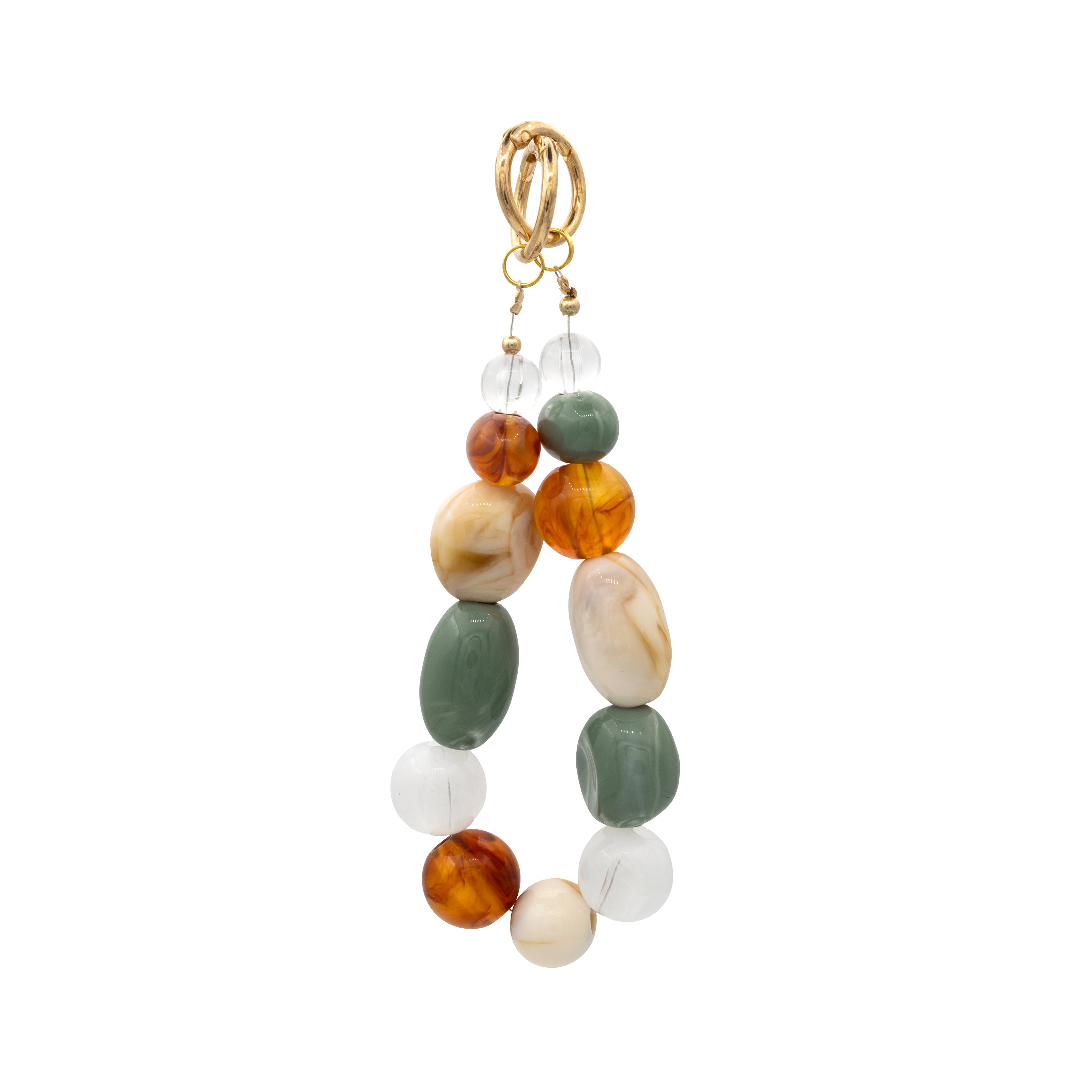 Dieser besondere Schlüsselanhänger von Kathy Jewels vereint stilvolles Design mit hochwertiger Verarbeitung. Die harmonische Kombination aus verschiedenfarbigen, marmorierten Designperlen in Grün-, Creme-, Amber- und Transparenttönen macht jedes Stück zu einem individuellen Blickfang.