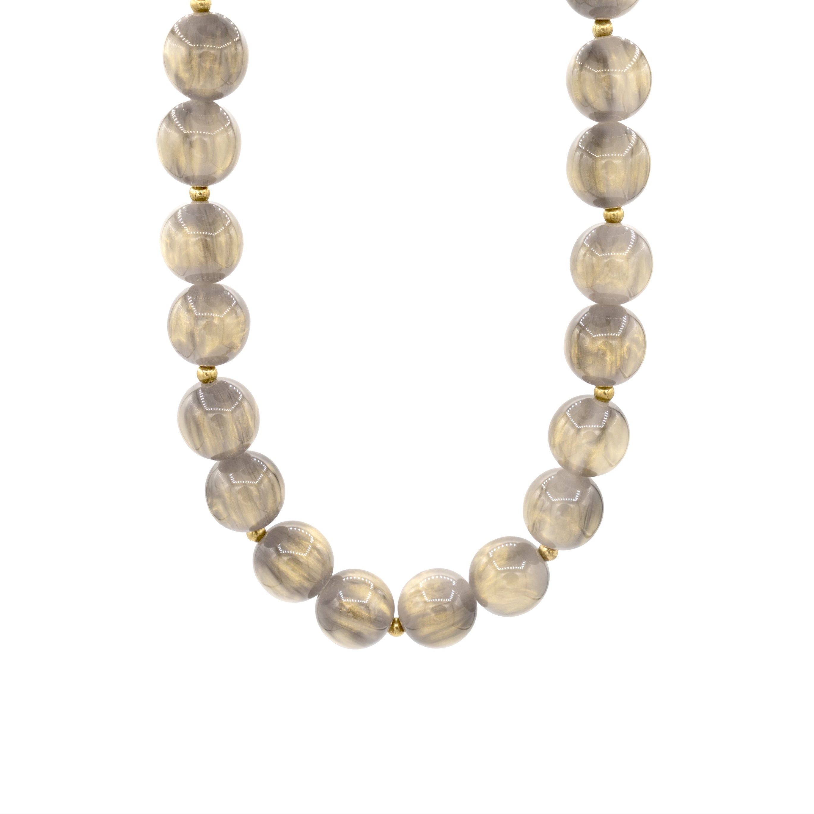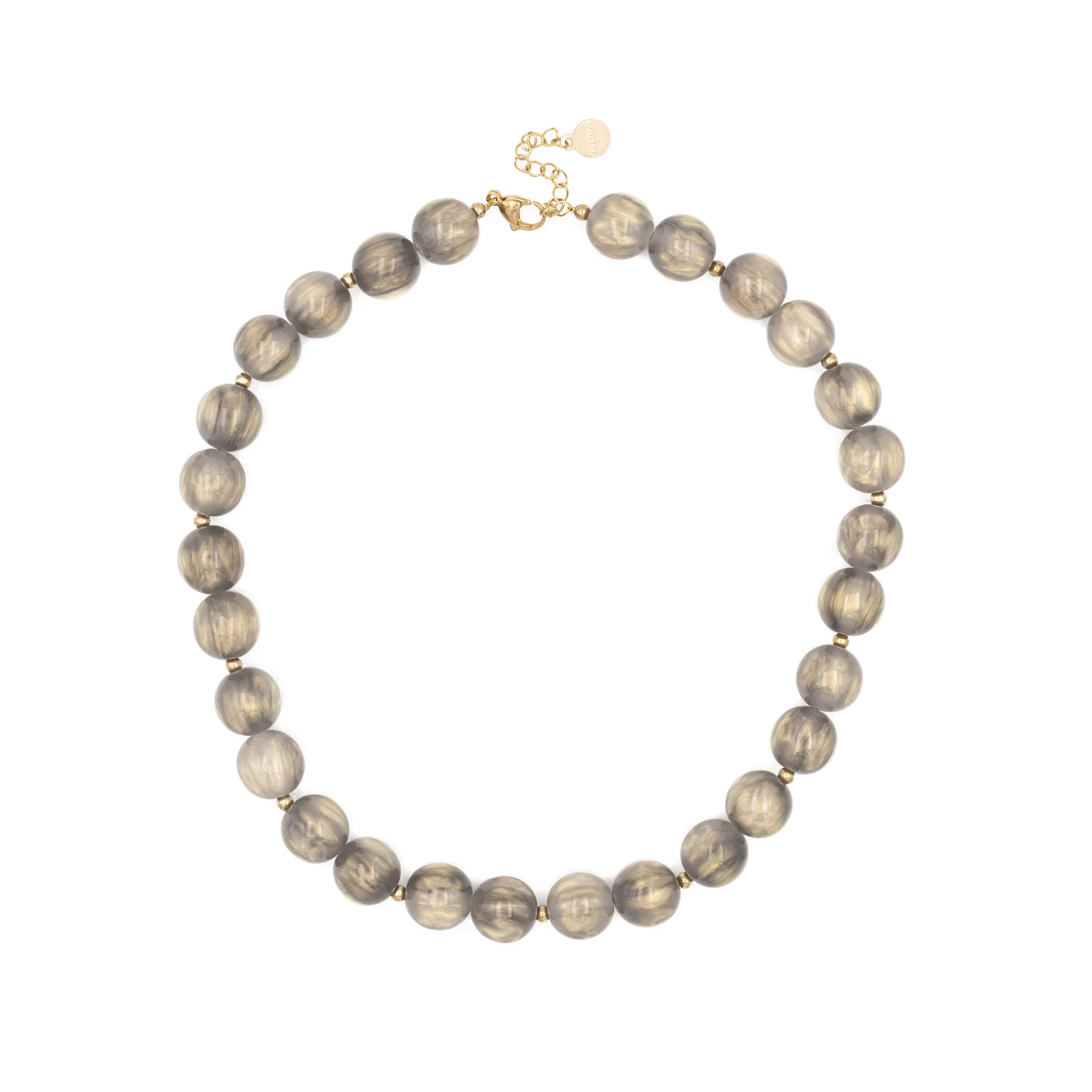 Die Kette Océane vereint zeitlose Eleganz mit modernem Glanz. Schimmernde graue Acrylperlen mit feinen funkelnden Effekten werden durch zarte goldene Akzente stilvoll unterbrochen. Das Ergebnis ist ein harmonisches Schmuckstück, das sowohl zu eleganten als auch zu lässigen Outfits passt. Perfekt für alle, die dezente Raffinesse und sanften Glanz schätzen.