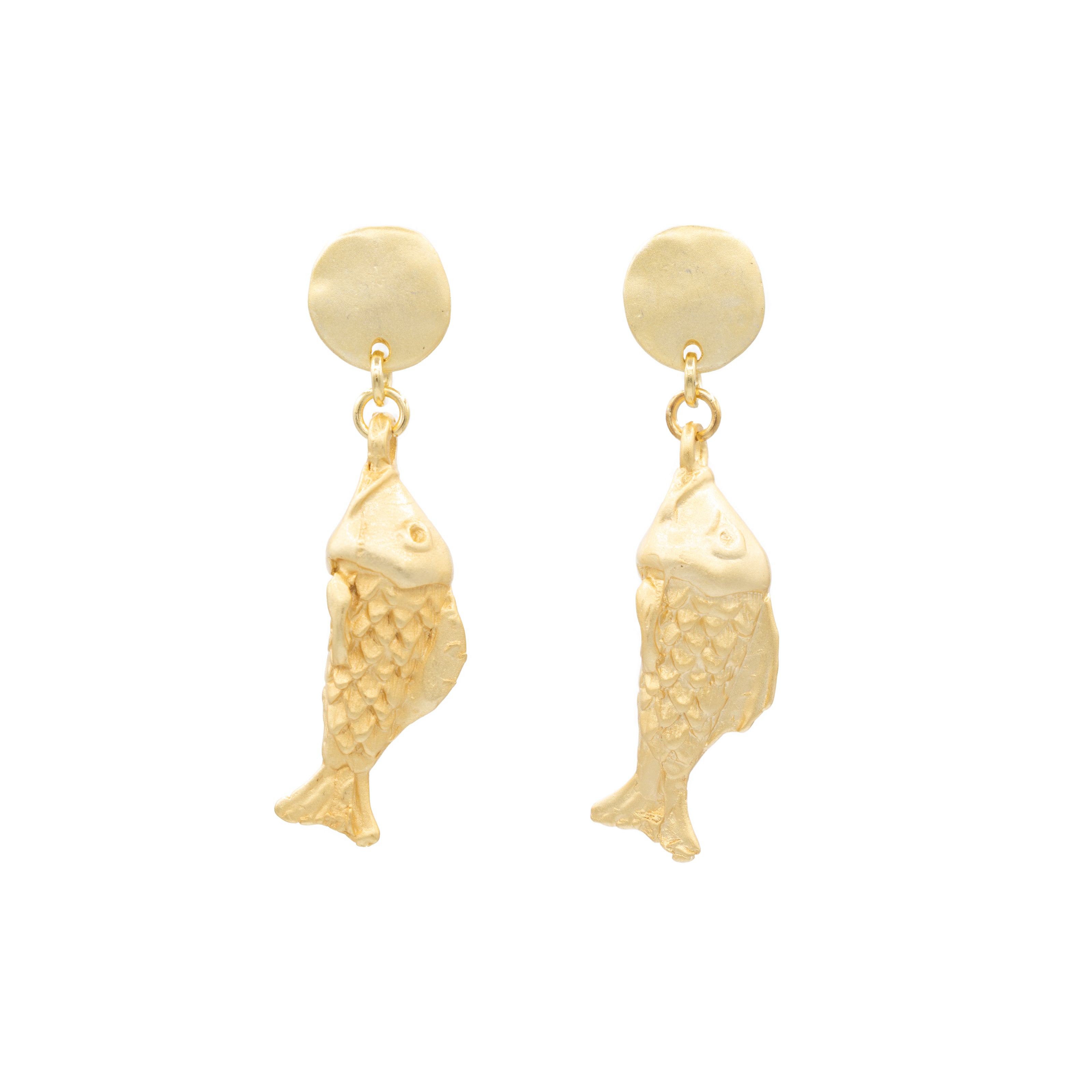 Die Sirène Ohrringe von Kathy Jewels sind aus Messing, 14K vergoldet gefertigt und begeistern mit ihrem außergewöhnlichen Fisch-Design. Maße 3 × 1,5 cm. Ein glamouröser Statement-Schmuck mit maritimem Flair – perfekt für Sommer-Looks, Abendkleider, Silvester, Weihnachten und festliche Anlässe.